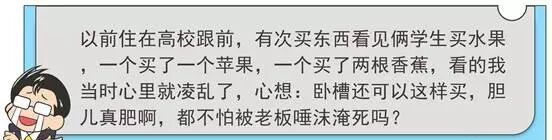 @撒葱花大户:我同学在学校门口水果摊买一个苹果还让老板削好皮切成块放打包盒里,我在旁边假装不认识她。